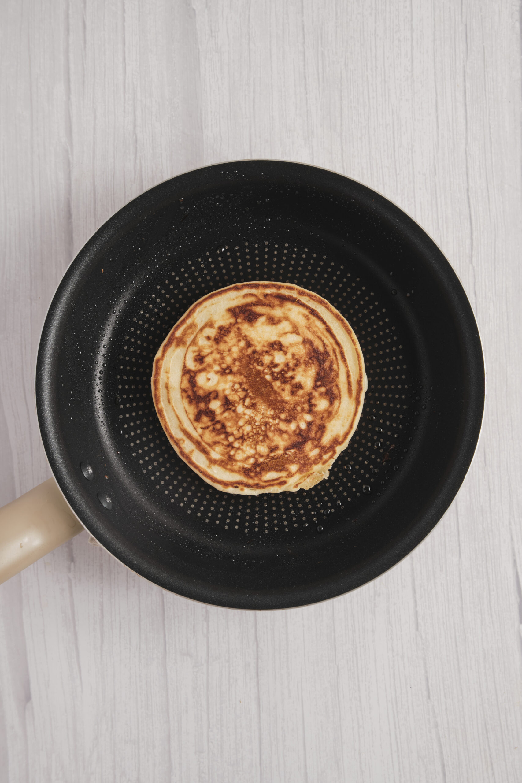 Cook for 2 to 3 minutes until bubbles form on the surface and the edges look set. Flip the pancake and cook for another 1 to 2 minutes until golden brown.