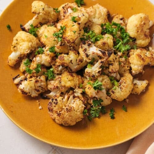 So, if you’re skeptical about cooking cauliflower, try this recipe and see how it can change your mind. I’ve known vegetarians and meat-eaters alike who fall in love with Parmesan-roasted cauliflower—pairing it with salads, steak, burgers, and more.