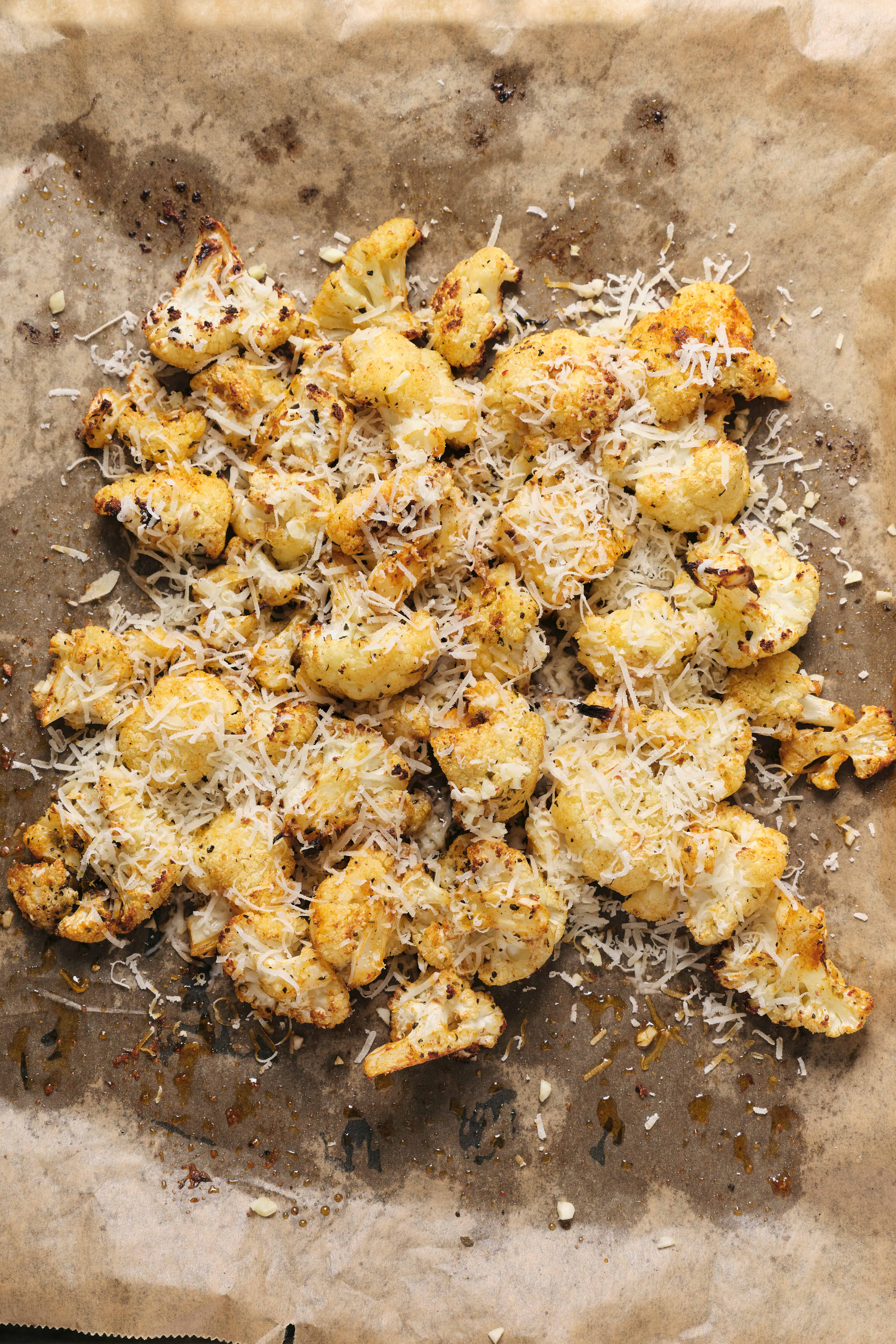 Once your Parmesan-roasted cauliflower has cooled to room temperature, transfer it to an airtight container and refrigerate for 4-5 days. Alternatively, transfer it to a freezer-safe bag and freeze for up to 3 months before thawing in the fridge overnight. Reheat leftovers in the oven at 350°F for 15-20 minutes, until each floret is sizzling with warmth.