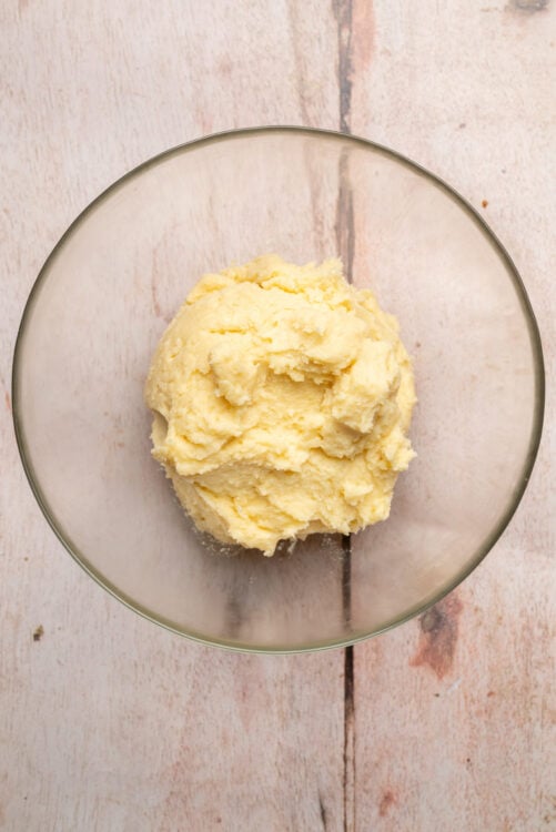 In a bowl, beat the softened butter, cream cheese, and vanilla until smooth. Gradually add the all-purpose flour and mix until a soft dough forms. If the dough is much too sticky to work with, you can add up to 1/4 cup more flour. The amount of flour needed may vary depending on the brand of cream cheese used.