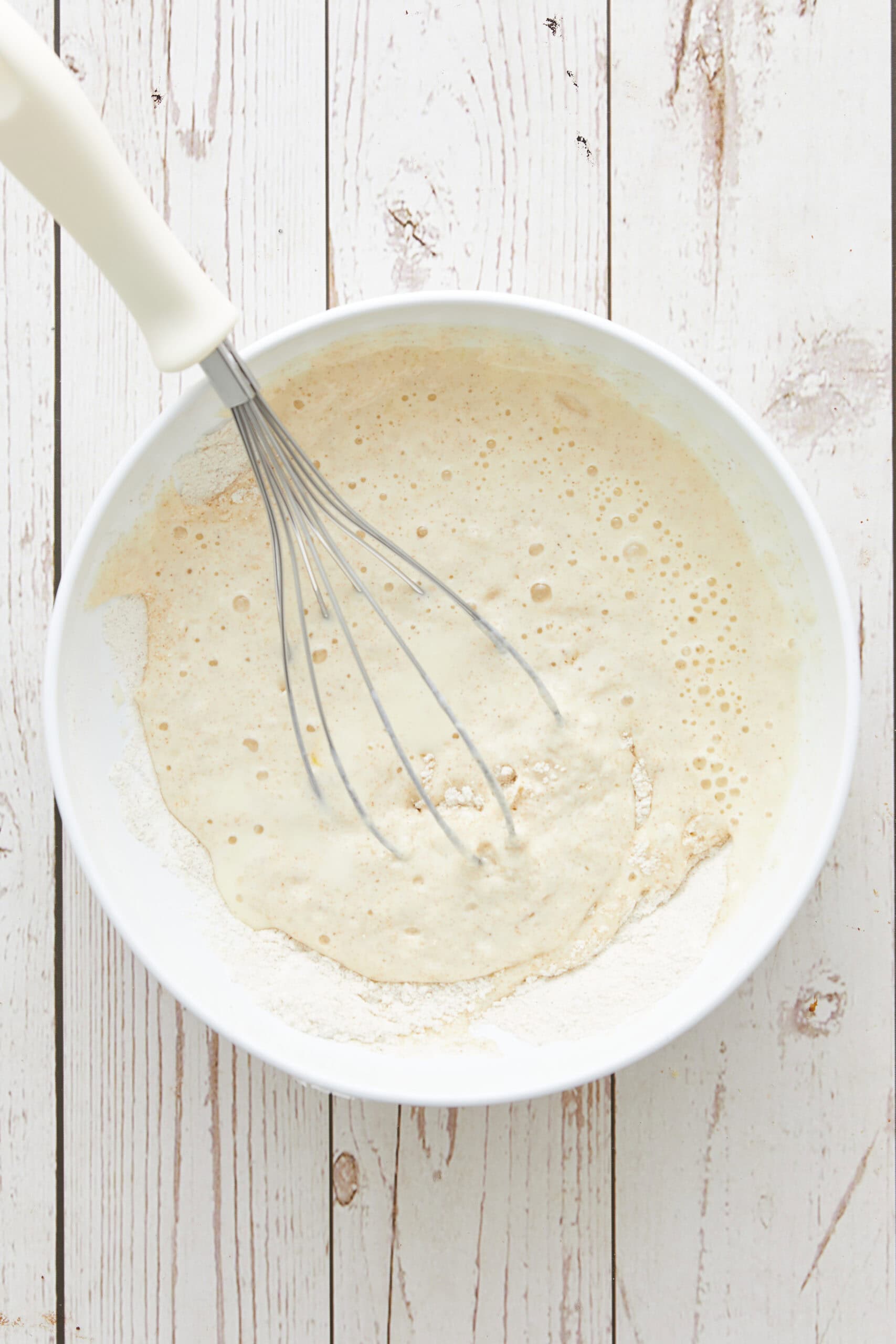 Slowly pour the wet mixture into the dry ingredients and stir until just combined. It is okay if the batter is a bit lumpy.