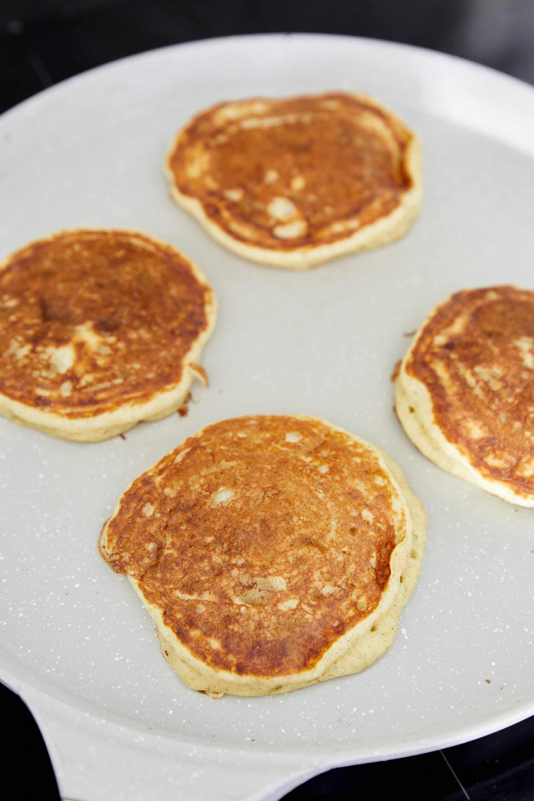 Cook until you see small bubbles forming on the surface and the edges look set, about 2-3 minutes. Flip the pancake and cook for another 1-2 minutes until golden brown. Serve warm with desired toppings.