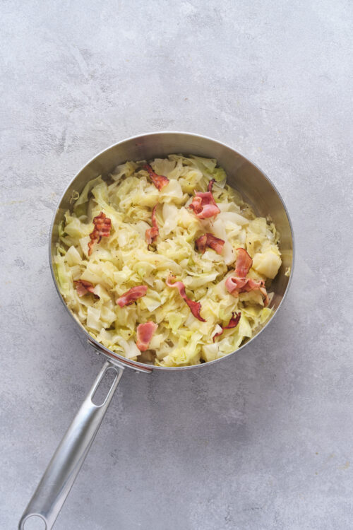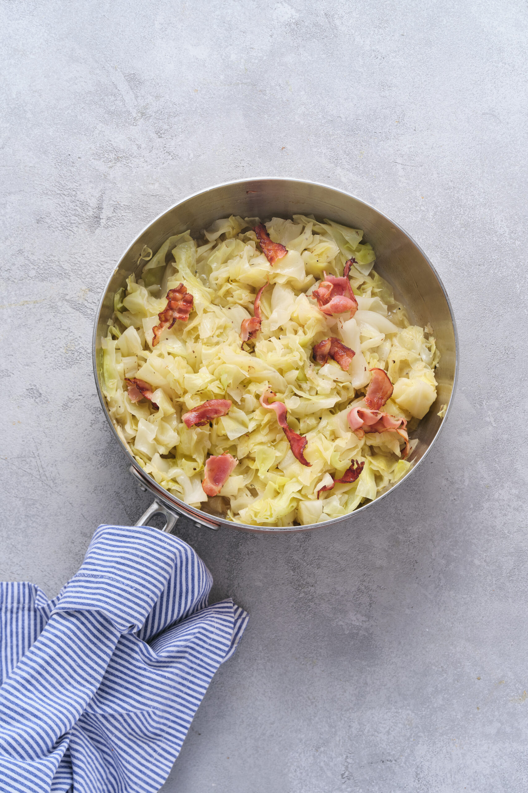 Taste the cabbage and adjust seasonings. Sprinkle reserved bacon on top or stir it in. Serve warm.