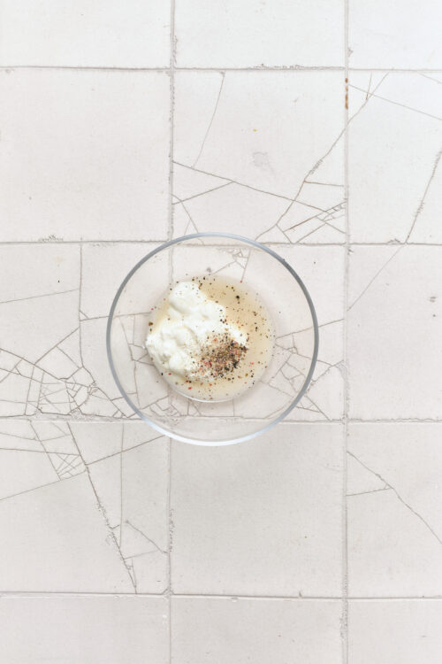 In a small bowl, whisk together the Greek yogurt, apple cider vinegar, granulated sugar, lemon juice, salt, and pepper until smooth. Adjust salt and sugar as needed.