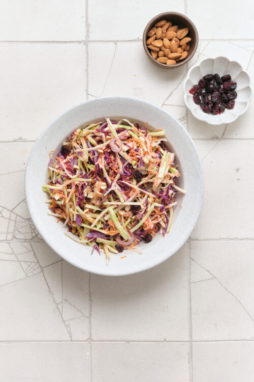 At first glance, broccoli slaw seems like only a summertime dish, but I’ve also made it as a side during the winter holidays. After all, it can be a mouthwatering complement to savory mains like turkey and mashed potatoes or roasted chicken. I’m never afraid to incorporate more sweet salads into dinnertime, because sometimes that’s what makes the meal!