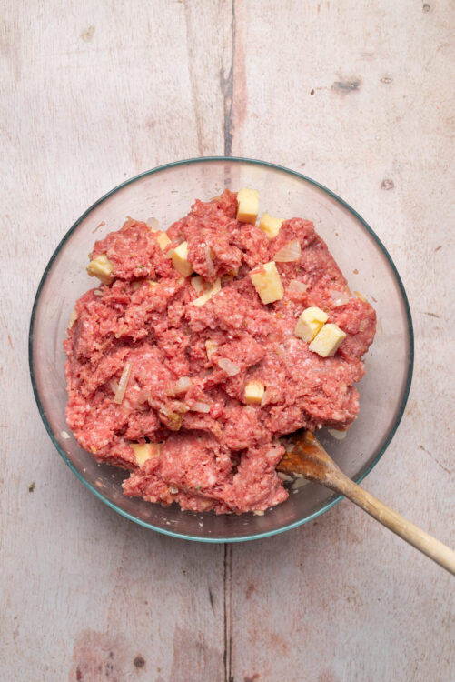 At first, I was intimidated by how fancy cheesy meatloaf appeared. But then I realized that the only difference is the chunks of cheddar cheese mixed into the meat. There’s no special technique, other than making sure it’s evenly distributed and being careful not to overmix—as this can ruin the tender texture we’re aiming for.