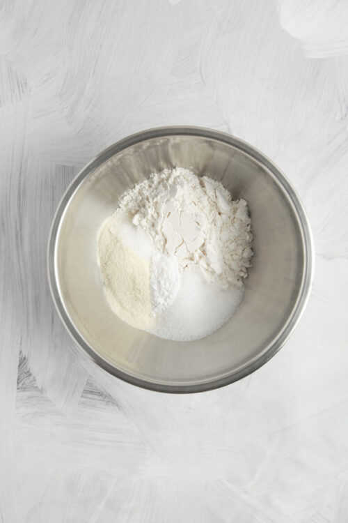 In a bowl, whisk together the cornmeal, all-purpose flour, granulated sugar, salt, and baking powder.