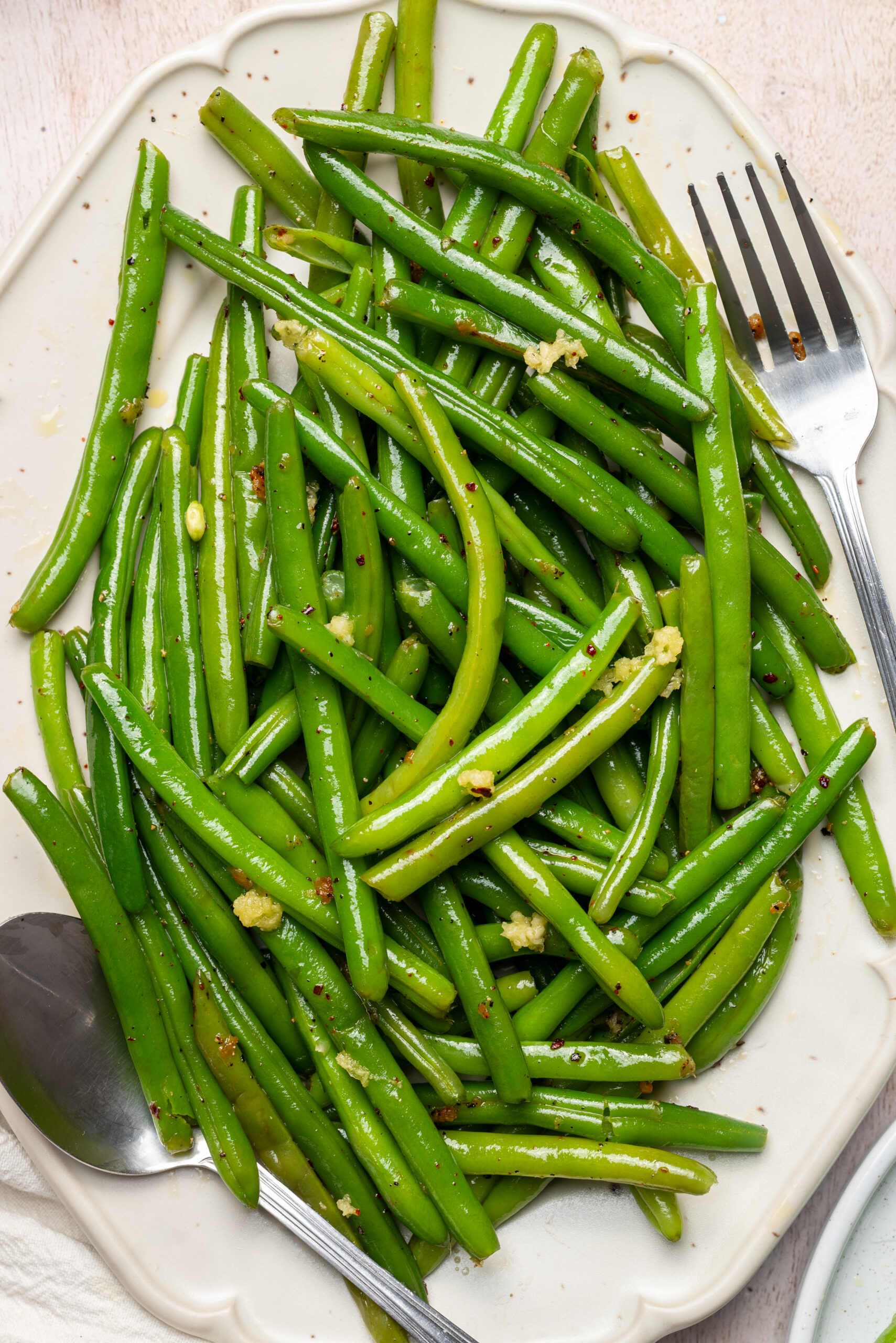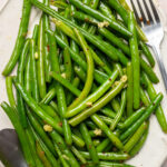 Make sure your garlic green beans have cooled completely before storing them in an airtight container. Refrigerate for 3-4 days or freeze in a freezer-safe container for up to 2 months. To reheat, sauté them in a buttered pan over medium heat for about 5 minutes, until they’re completely warm.