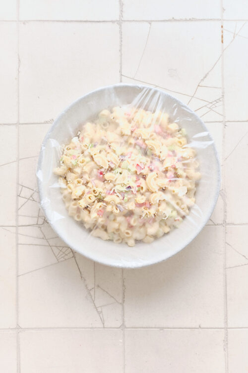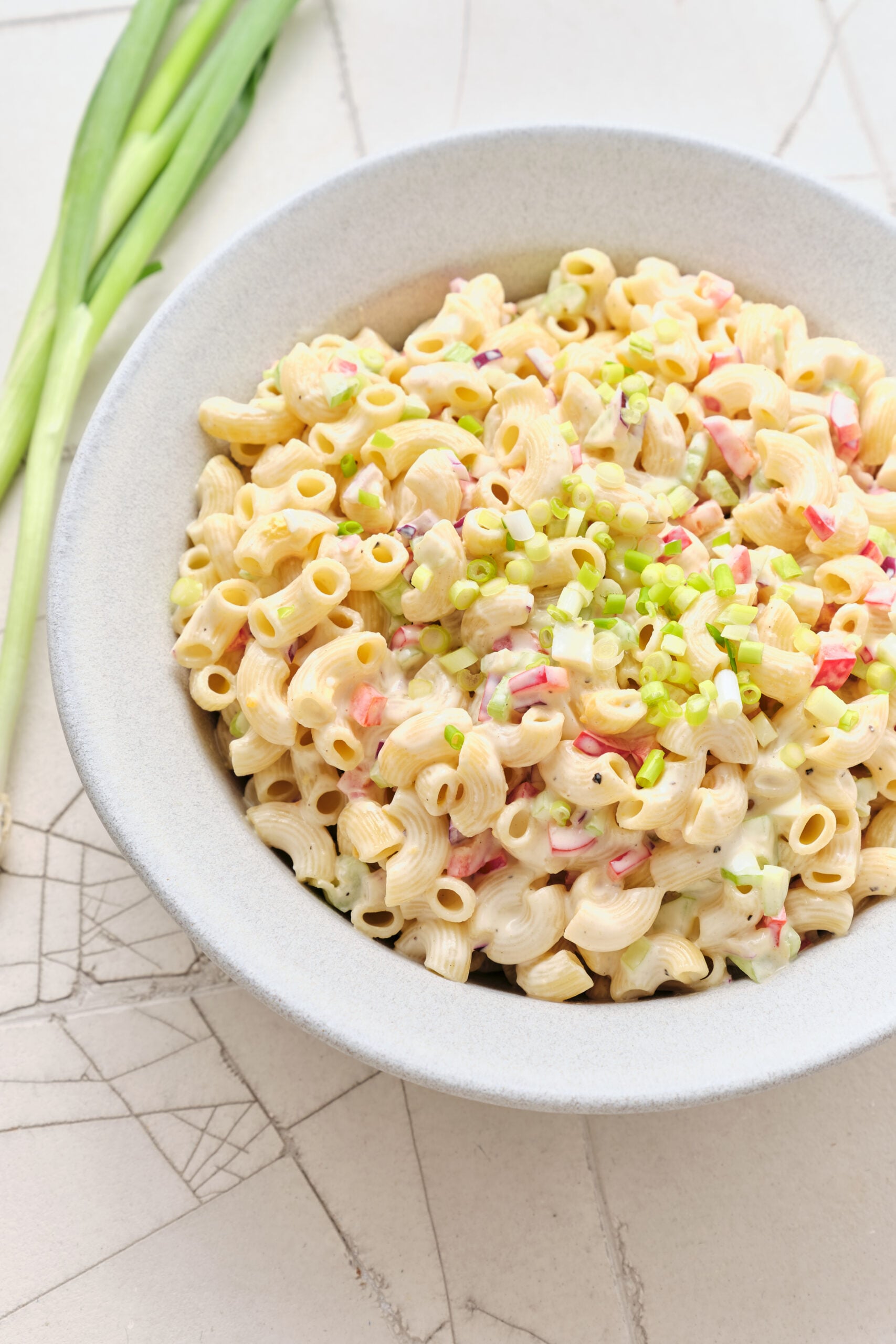 In the city of Rochester, where I grew up, macaroni salad was a key ingredient in what many restaurants titled “garbage plates.” They’re these big, juicy plates of burger or hot dog, plus baked beans, fries, and spicy meat sauce. So, if we ever had leftover mac salad from picnics, my mom would take some home and repurpose it for our very own garbage plates. Luckily, we have a lot of options for how to serve this dazzling little side dish!