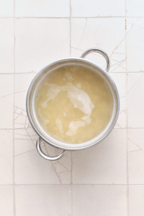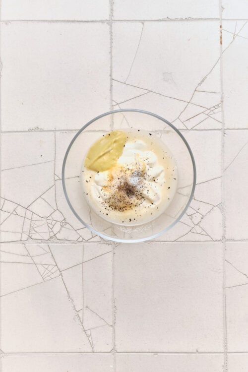 The first step is to make sure that you rinse the macaroni in cold water after it’s cooked. This not only stops the cooking process and cools the macaroni, but it also removes excess starch so that the final product isn’t sticky but velvety smooth. Next, she recommends tasting the dressing as you go so that you can add more sugar if needed. I’ve also seen her use honey mustard instead of Dijon for more sweetness. Last but not least—she tops off the whole bowl of mac salad with slices of hard-boiled egg so that it both looks nice and has even more protein.