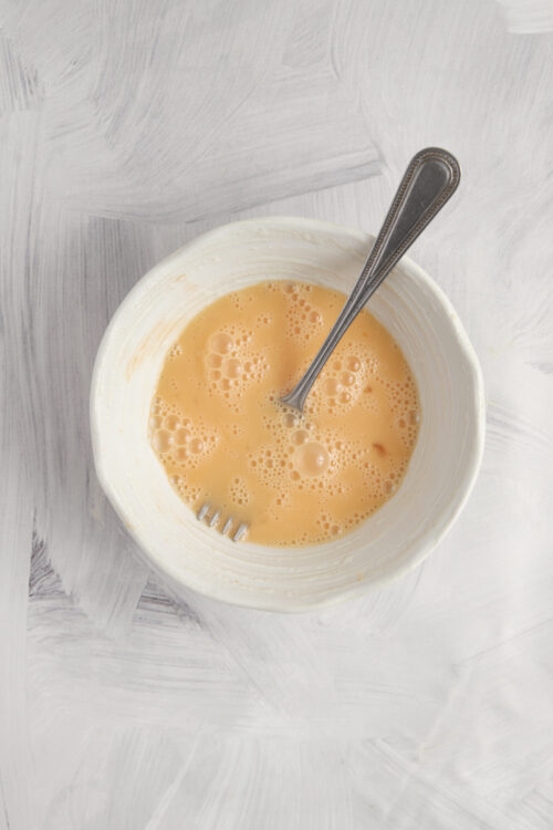 Dry the onion rings with a paper towel. Dip each ring first in the flour mixture, then in the beaten eggs, and finally coat with the panko breadcrumbs so the coating sticks well.