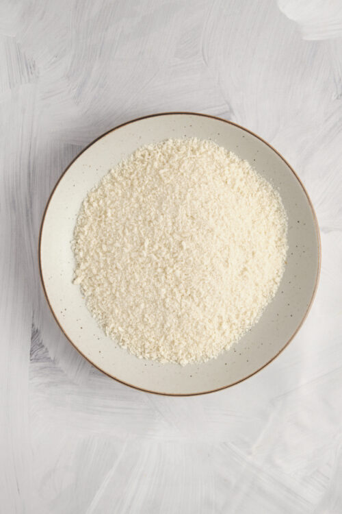 In a shallow dish, combine the flour, garlic powder, onion powder, and salt.