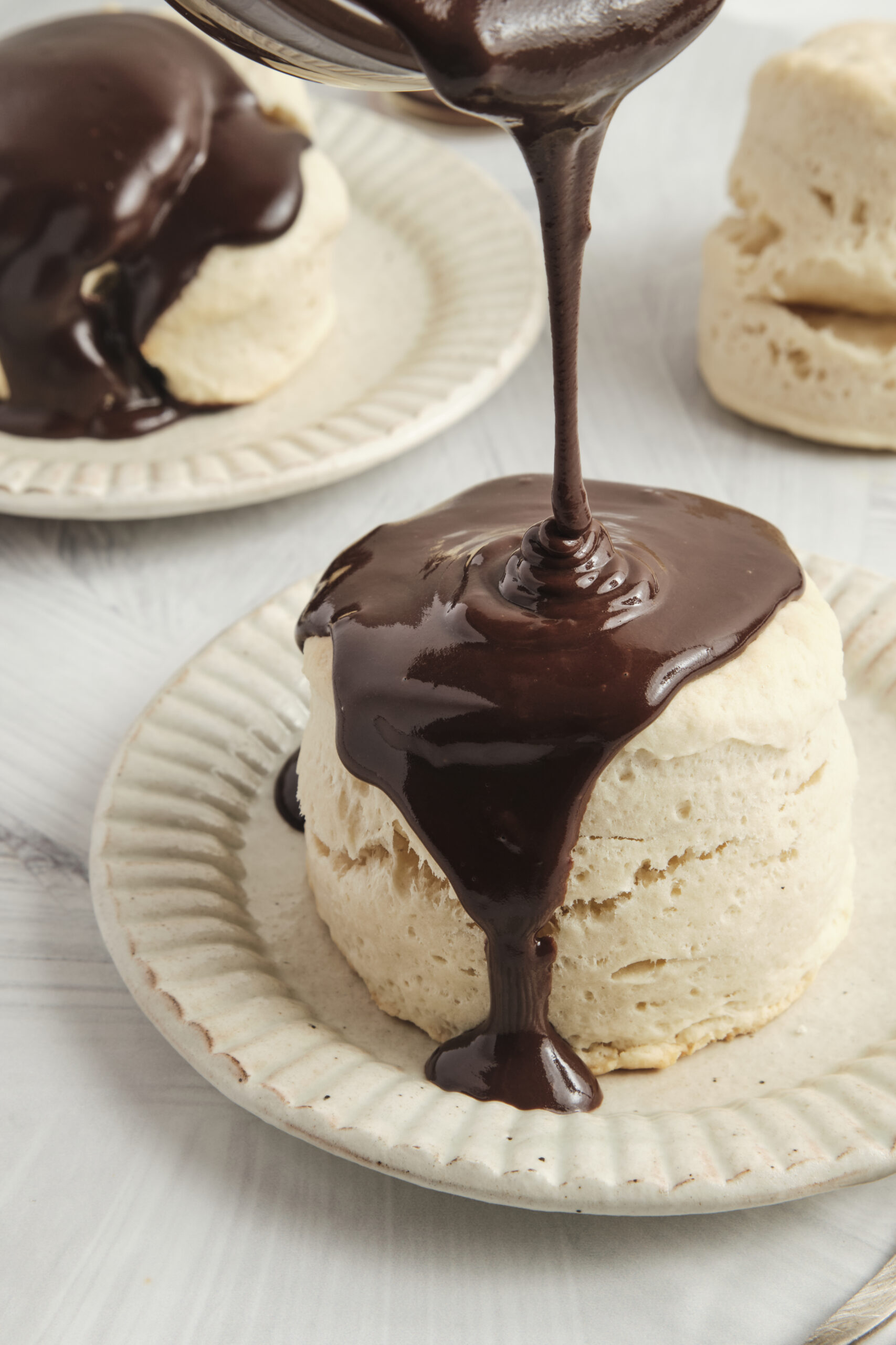 Serve the hot biscuits topped with the warm chocolate gravy.