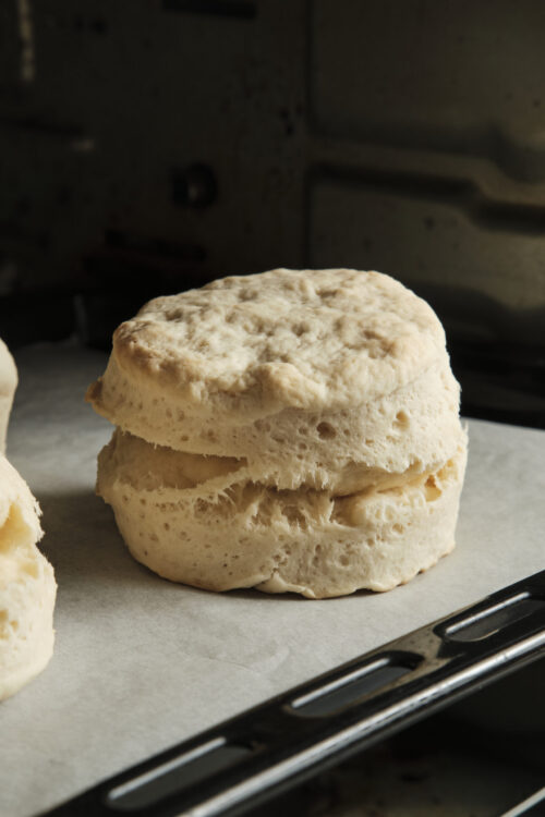 Preheat the oven to 350°F and bake the biscuits according to package directions.