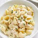 Allow leftovers from this tuna helper recipe to cool to room temperature, then refrigerate them in an airtight container for up to 4 days. I recommend reheating leftovers in the microwave for 45-second intervals—stirring after each cycle—until warmed through. You can also reheat it over low heat on the stove, stirring frequently. If necessary, a splash of broth may be added to thin the sauce. I don’t recommend freezing this dish.