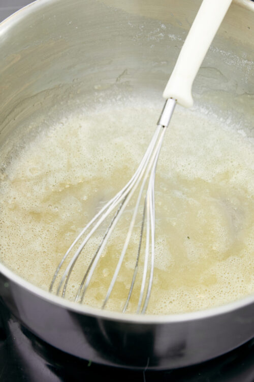 In the same pot, melt the butter over medium heat. Add the flour and whisk for about 1 minute to form a smooth paste.